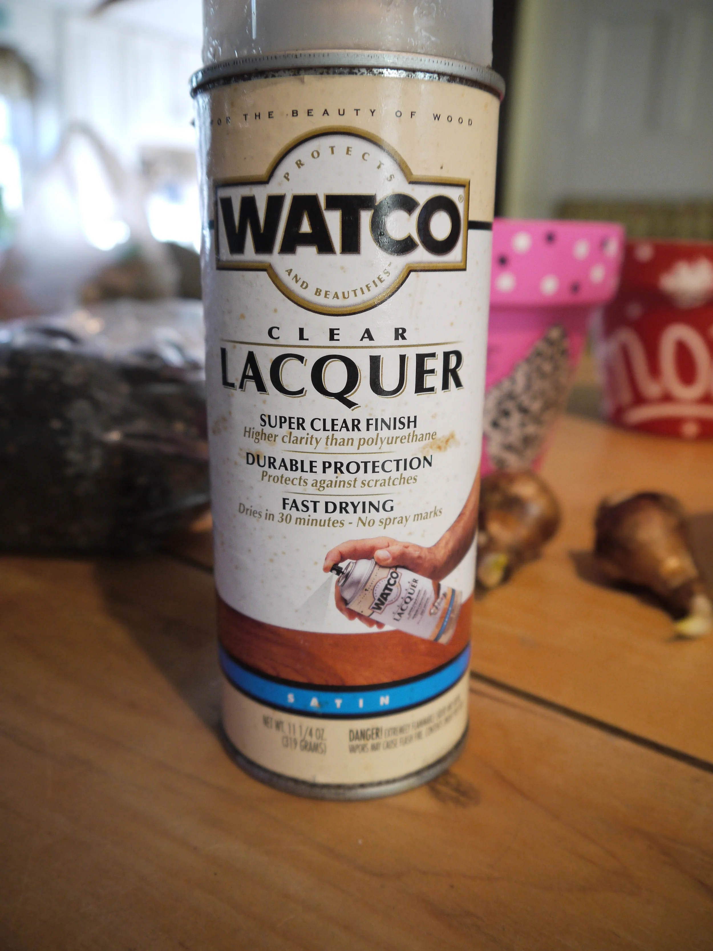 • Lacquer or other sealer (I used a spray, quick drying lacquer)