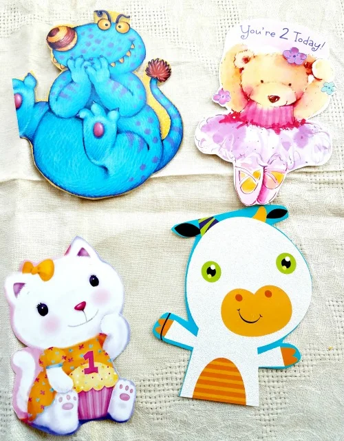 If you do not have little children at home, you may not have many of these cards coming into your house. But if word gets out that you are seeking old greeting cards for creating, you will get plenty passed on to you. You'll want to make sure no one wrote inside the front of the card because that's where your kiddos are going to sign their names.