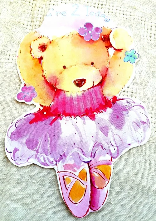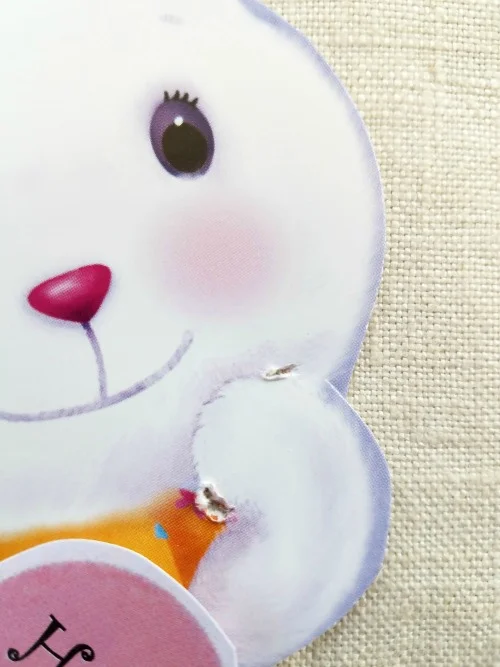 I use old greeting cards regularly for various creative purposes and always end up with a stack leftover, you know the ones with the big cute critter or creature on the front. They are adorable but limited as far as creative purposes go.